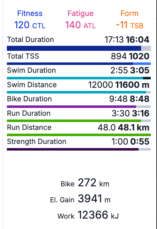 The TLDR is I’ve done 3 hours of swimming, almost 9 hours on the bike and 48km of running. Most of you will probably read this and think “there’s absolutely no way he’s doing a sub 8 hour Ironman off that”.